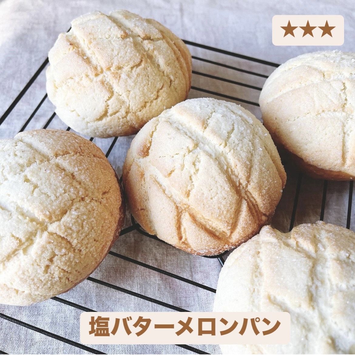 ![]() | 【塩バターメロンパン】★★☆4000円 4〜7月限定 5個 サクサクのクッキー生地とふんわりなパン生地。そして、パンの中にはじゅわっと広がる バターとほんのり効いた塩気が絶妙で、クセになる美味しさです! (卵あり) |