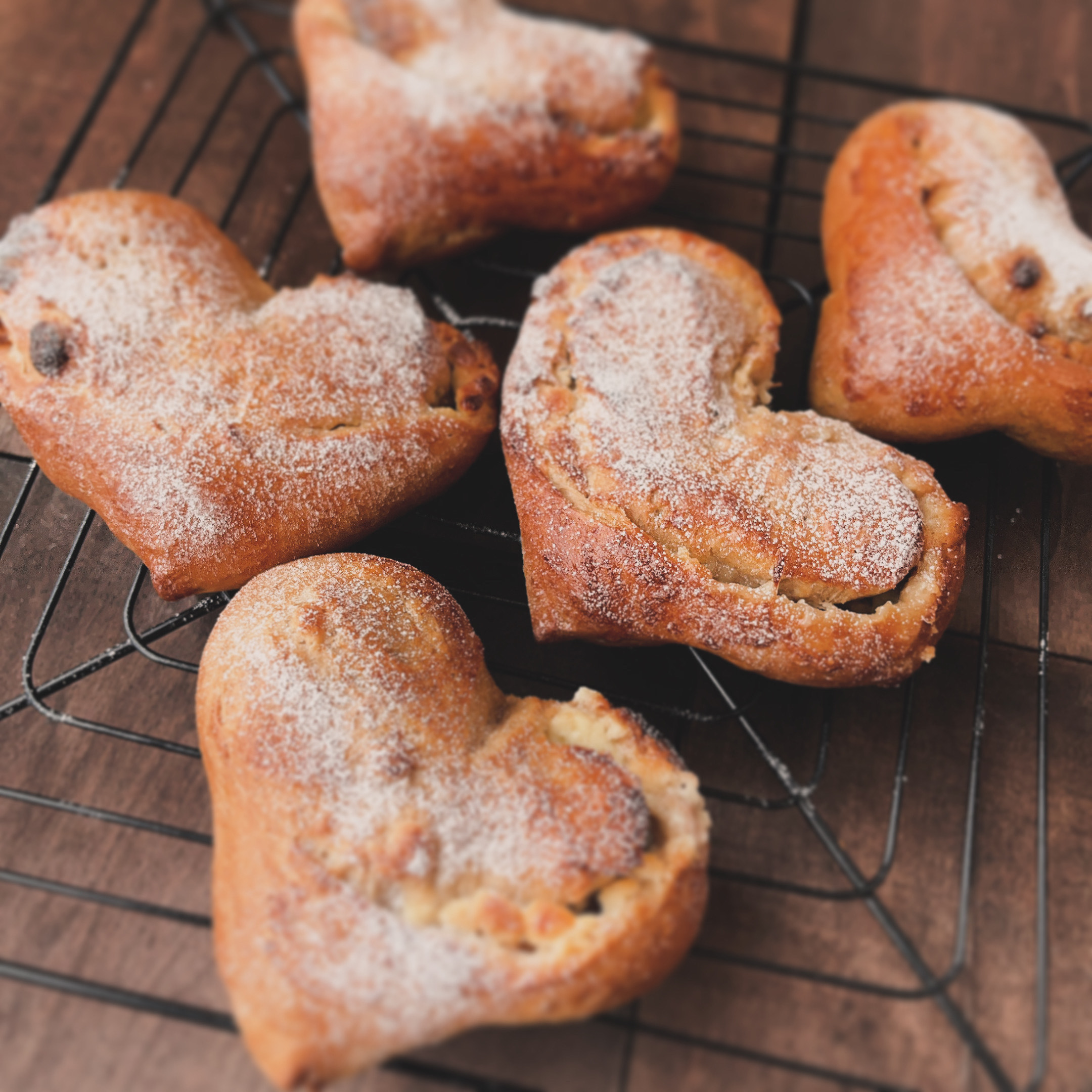 ミルクコーヒー生地にキャラメルチョコを混ぜ込みます。コーヒーのほろ苦さとキャラメル風味の優しい甘さが相性抜群のパンです♪可愛らしいハート型に成形します。