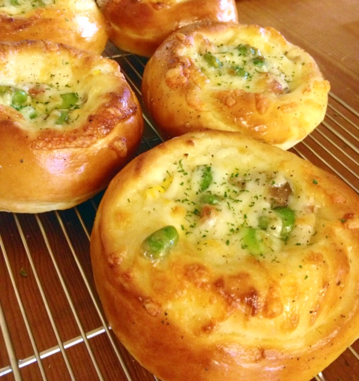 ふかふかのパンに とろ〜りグラタン! とっておきの美味しいパンできました·͜· ♪ アレンジ自在のパンです。 ⁡