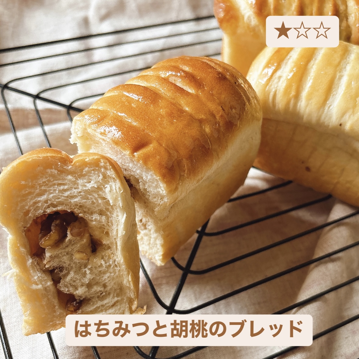 はちみつの優しい甘さの生地と、胡桃の香ばしい風味が美味しいミニ食パンです。